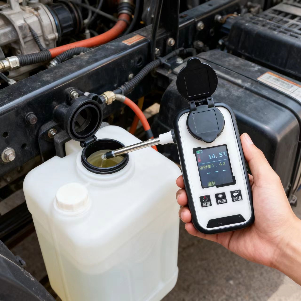 数显尿素折射仪(车用尿素浓度计)是测量柴油机尿素液(AUS 32)浓度的产品。该仪器可以快速检测出车用尿素溶液的浓度。是方便汽车生产厂、环保质检执法检查,终端用户技术部、质量部、防冻液、车用尿素溶液经销商快速鉴别产品部分指标的一种工具。可以非常方便地帮助汽车厂家、公交公司、大型车队等终端用户检测车用尿素溶液产品的浓度是否合格.也可以通过尿素浓度和冰点的曲线图,来推算尿素的冰点值。